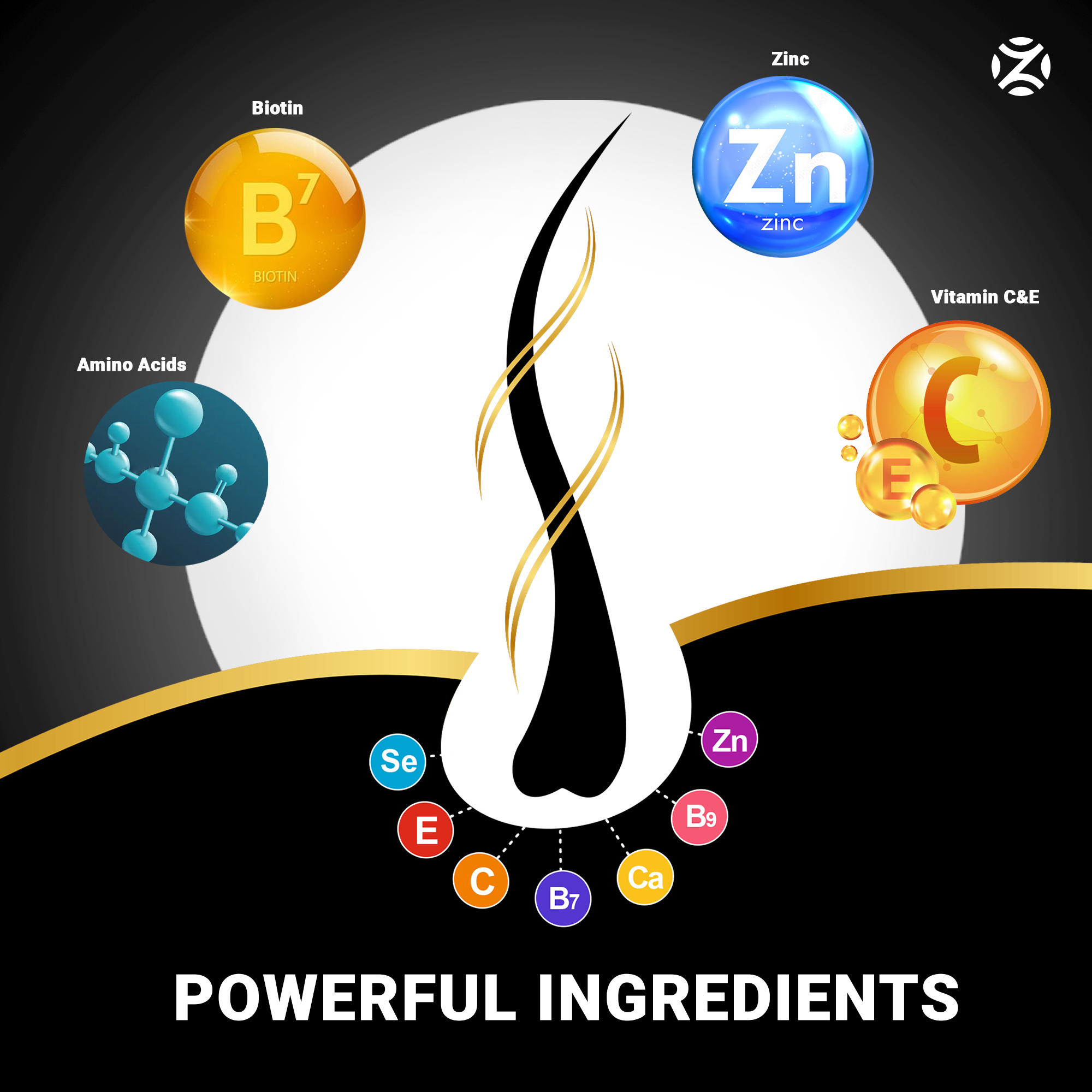 Advanced clinical-grade hair growth supplement meticulously crafted with Biotin, 18 vital amino acids, vitamins, and minerals for luscious, stronger hair.